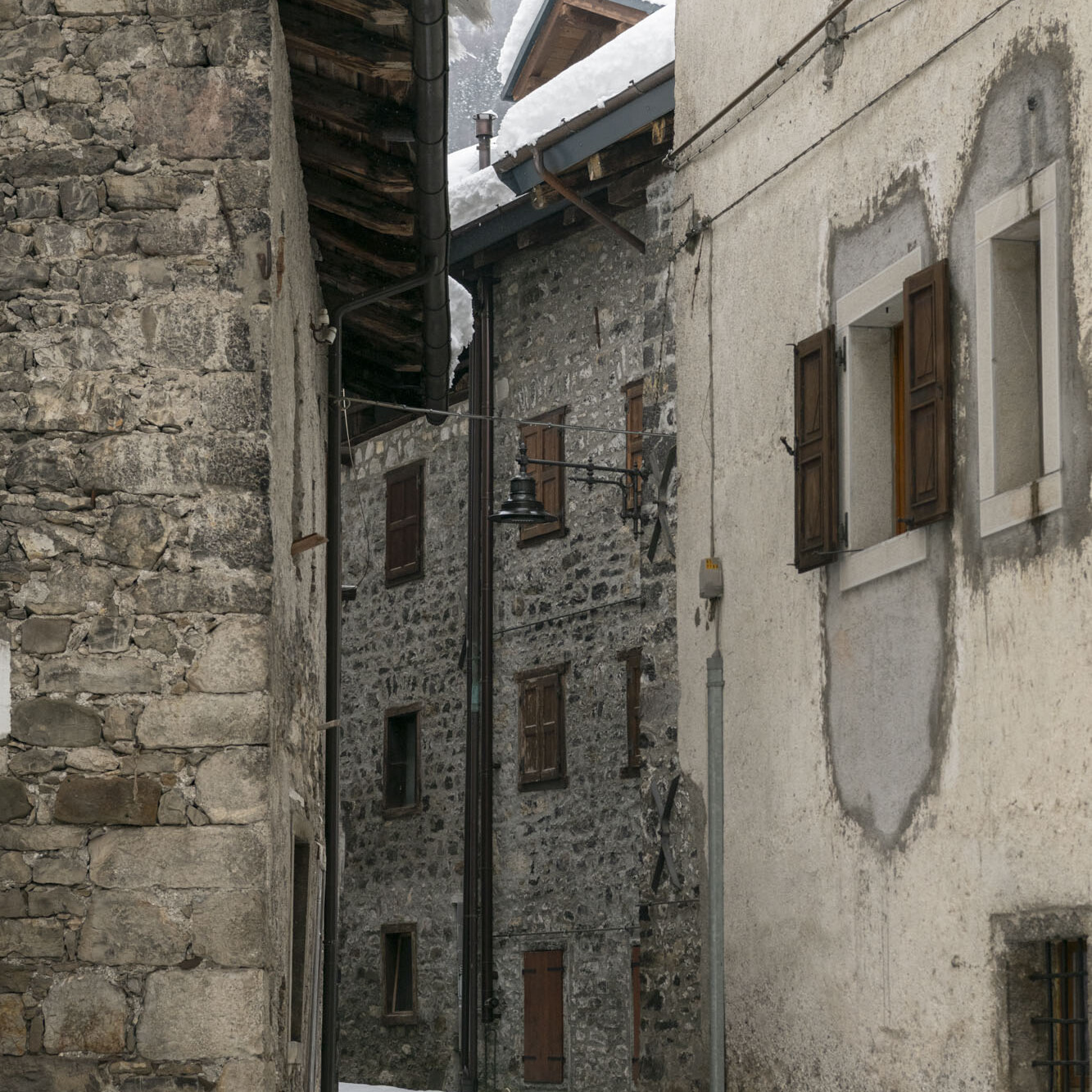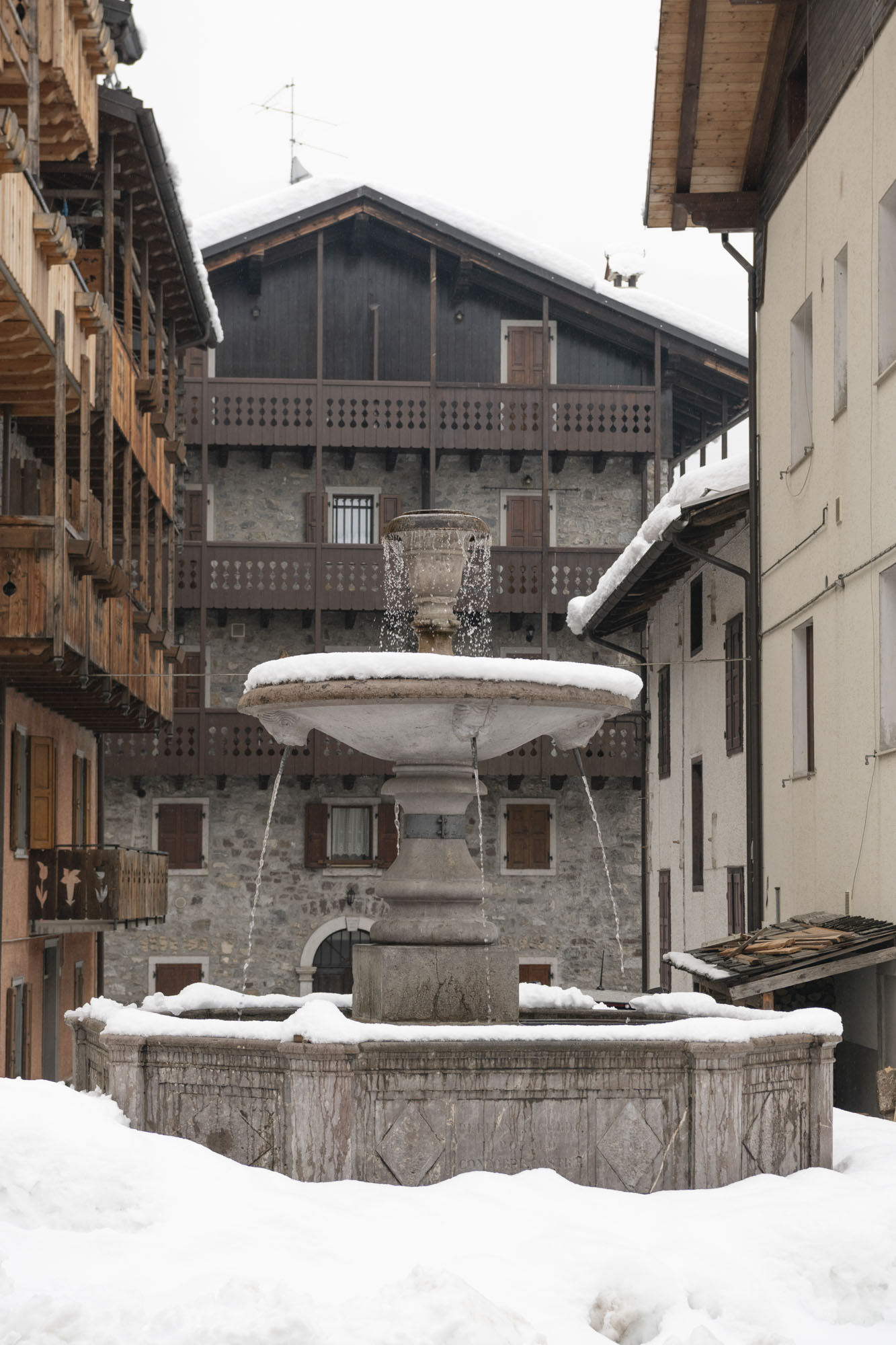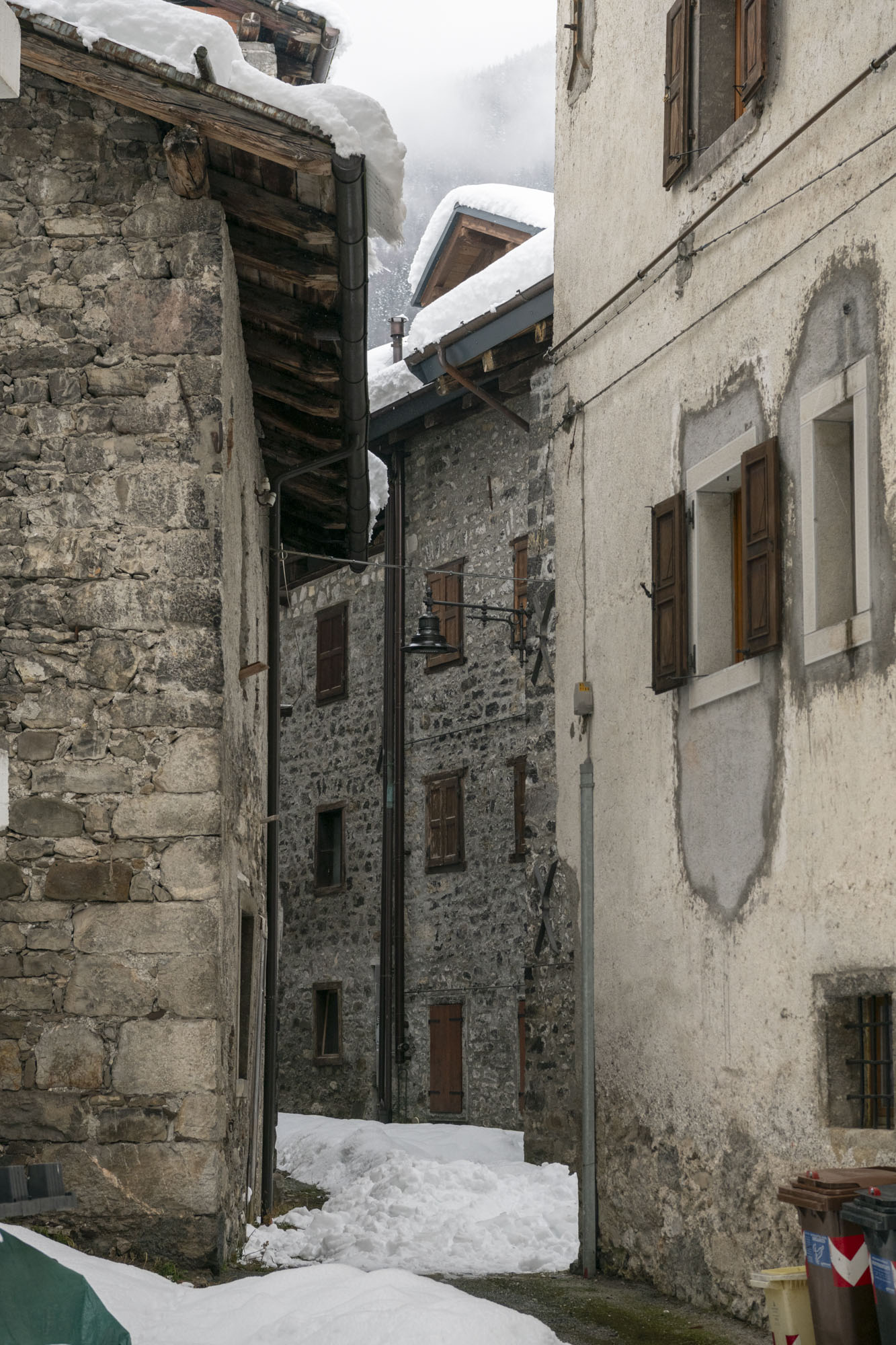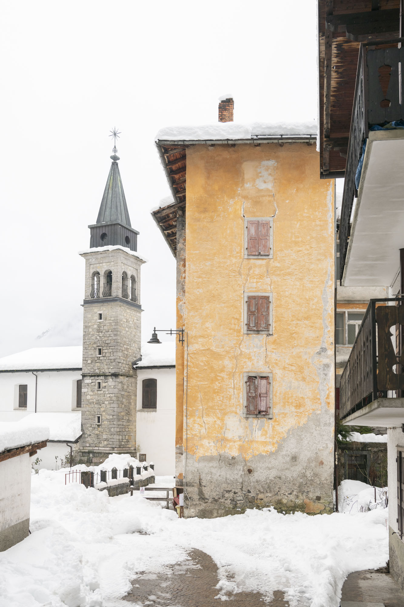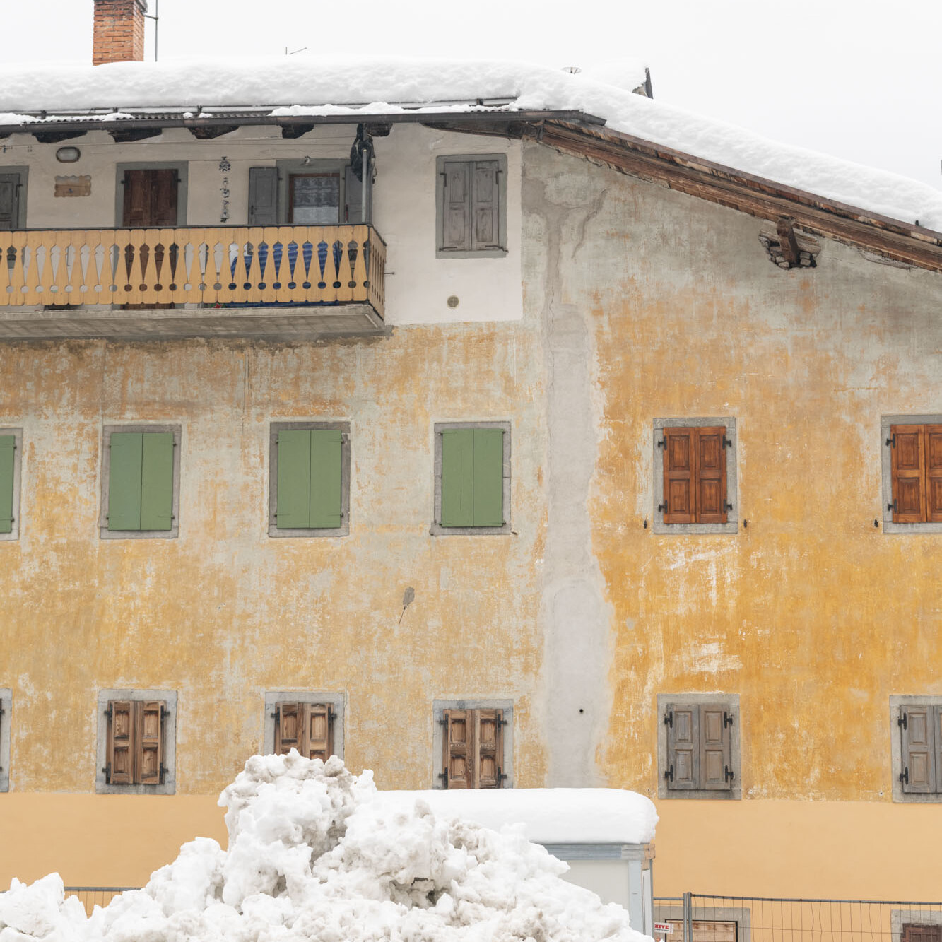 Abbiamo esplorato il paese e alcuni dei suoi Corpi d’Interesse insieme al Sindaco Iginio Coradazzi, grazie Gino. Tra le cose lieti, utili, una bella sala boulder al Centro Sportivo Comunale, saggio di Blockbau ad Andrazza. Abbiamo ritrovato Timilin e Donatella: ma chi li ferma. E Ugo, con la sua sorprendente collezione nello storico Palazzo Chiap. Siamo tornati alla Colonia O.D.A, là poco in parte alla Statale 52 Carnica, in disuso dagli anni ‘80, fai la traccia in un metro di neve, un po’ fresca un po’ impaccata, e guada il Rio Calda, anche qui vengono delle buone idee, mentre prepari le pelli per Cridola e Varmost (ma non in questi giorni rossi, calma, testa).