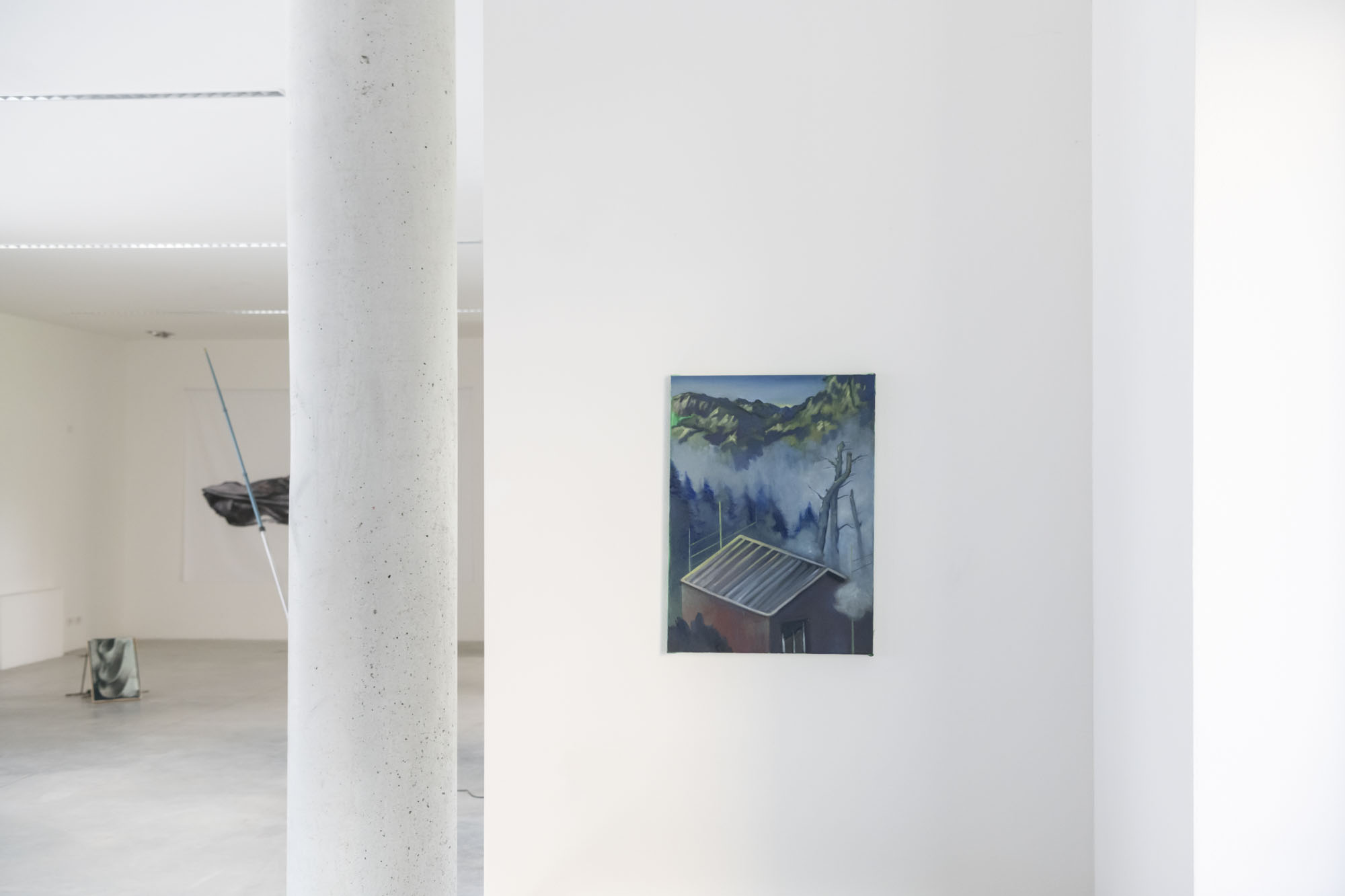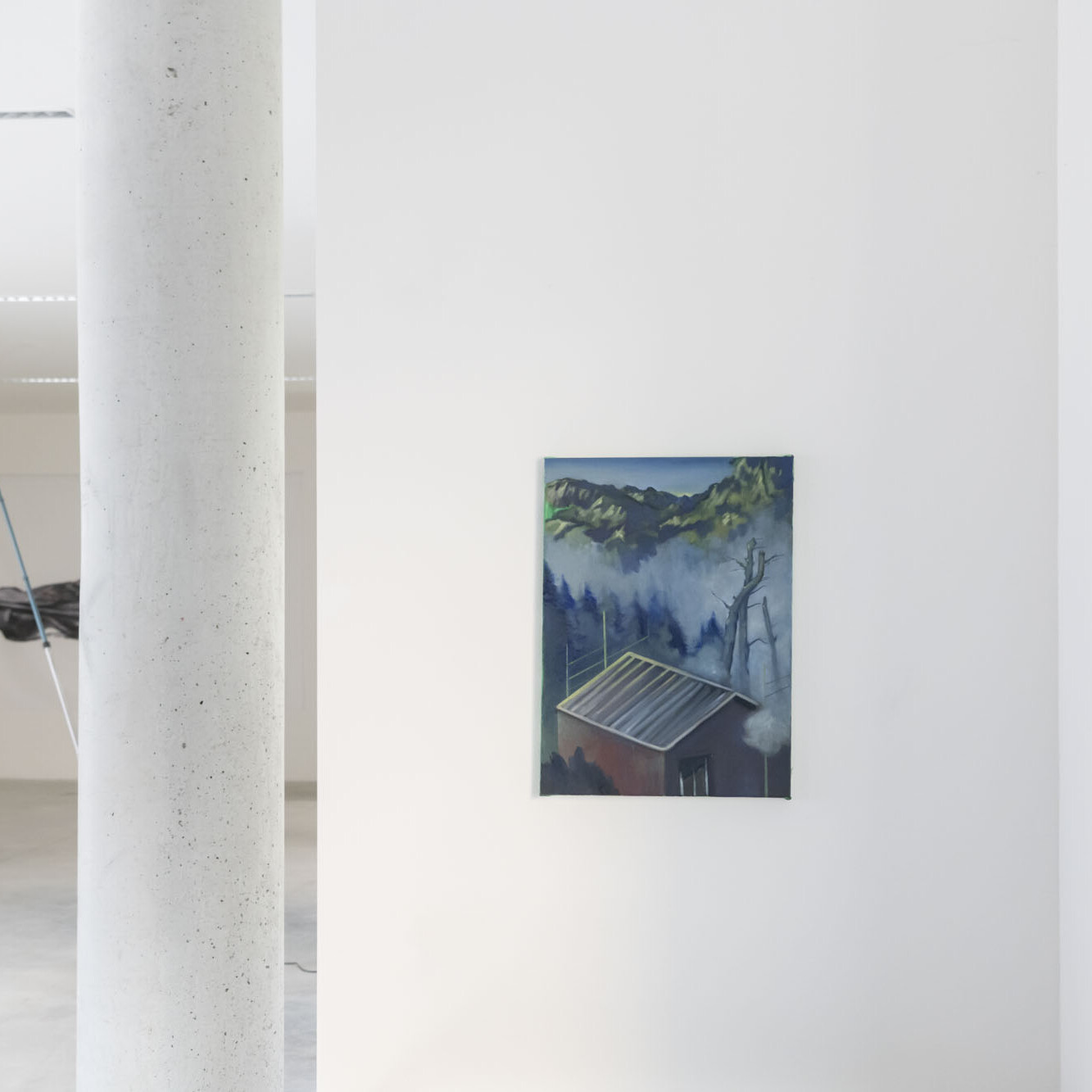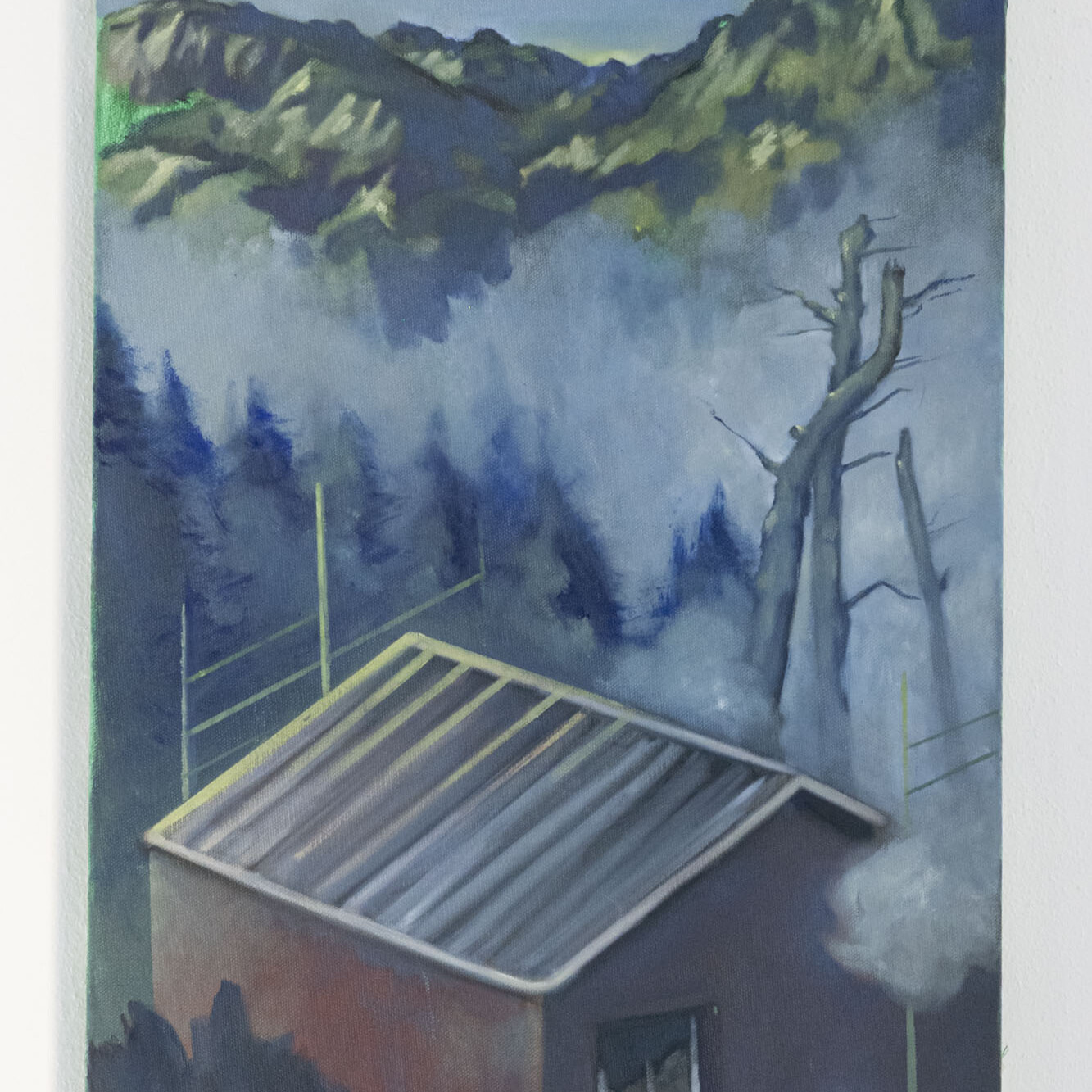 Il dipinto si ispira al modo in cui gli esseri umani creano spazio per se stessi in un paesaggio che torreggia sopra di loro.