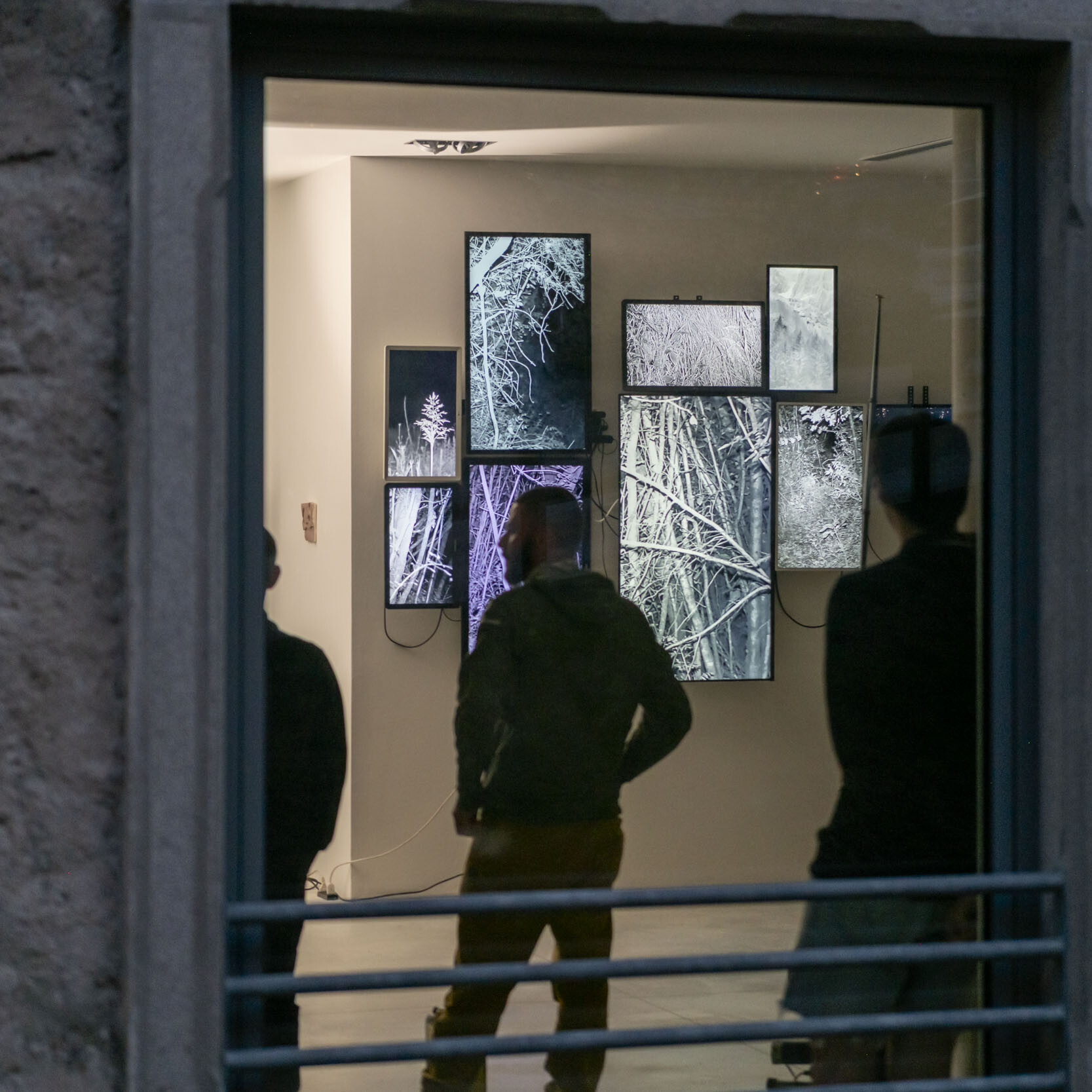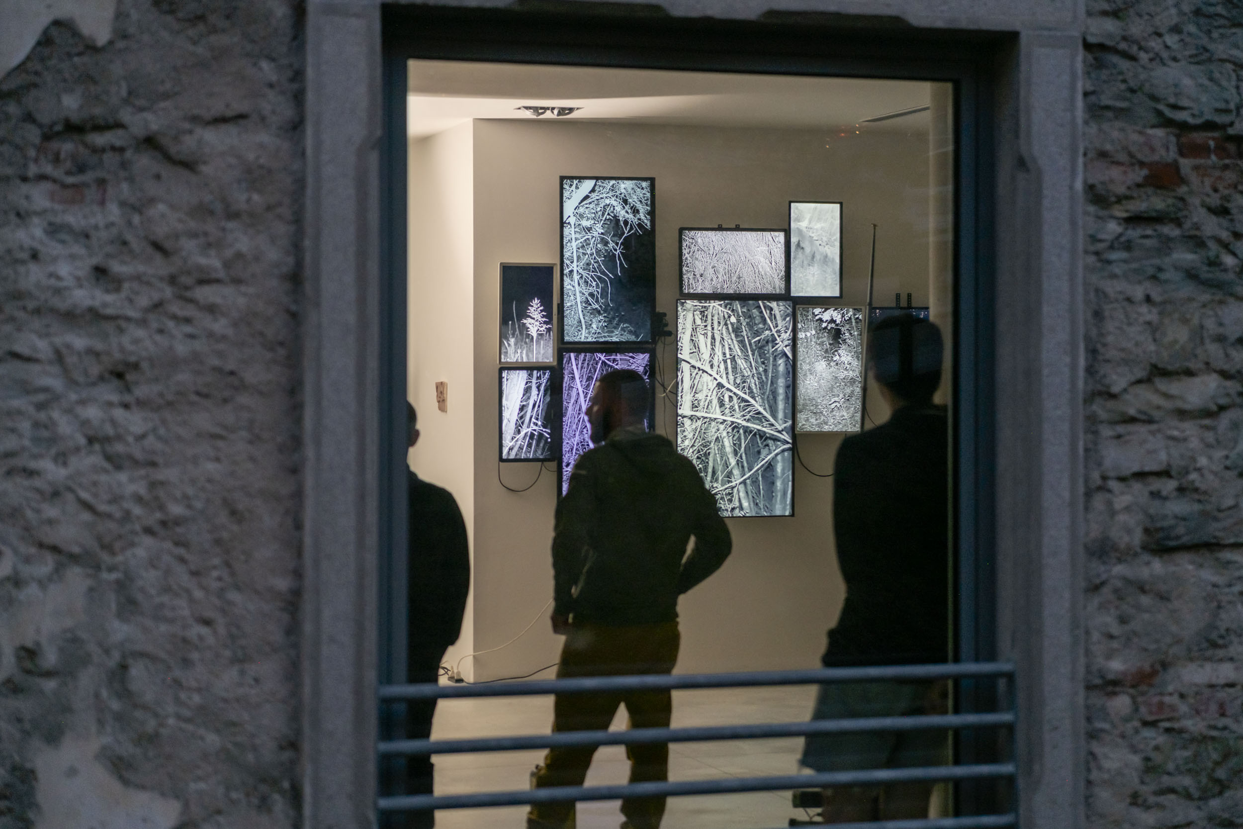 Qua, se vedi i video integrali in mostra, alle volte vedi passare gli artisti stessi, mentre si muovono per boschi, ci son dei suoni, non si tratta (?) di un’Attività Paranormale, in Residenza scalavano i muri di Casa Cametti e andavano in giro per la Colonia, il Cadore e Resto dei Reami, avanti e laddietro.