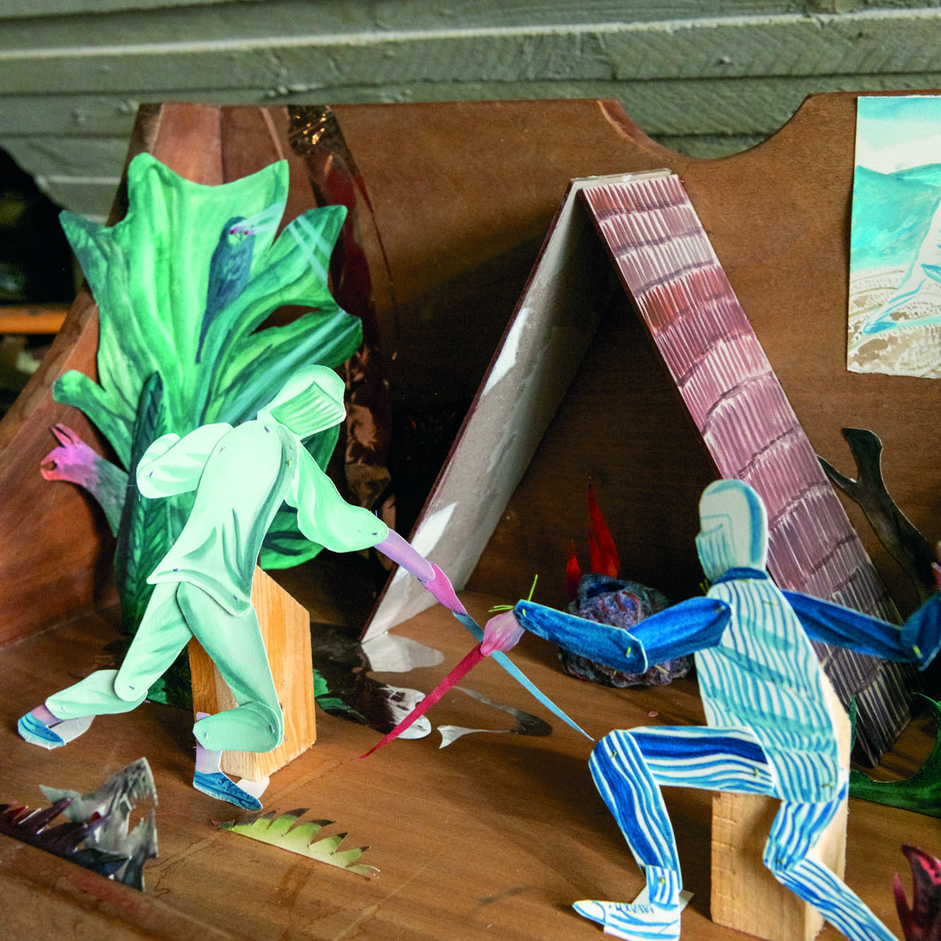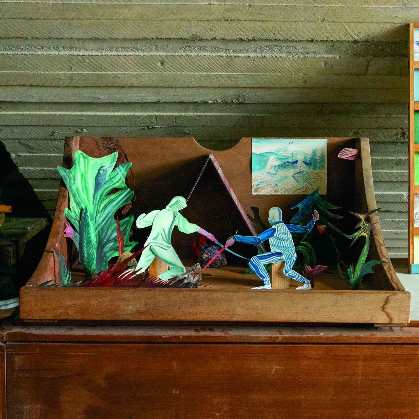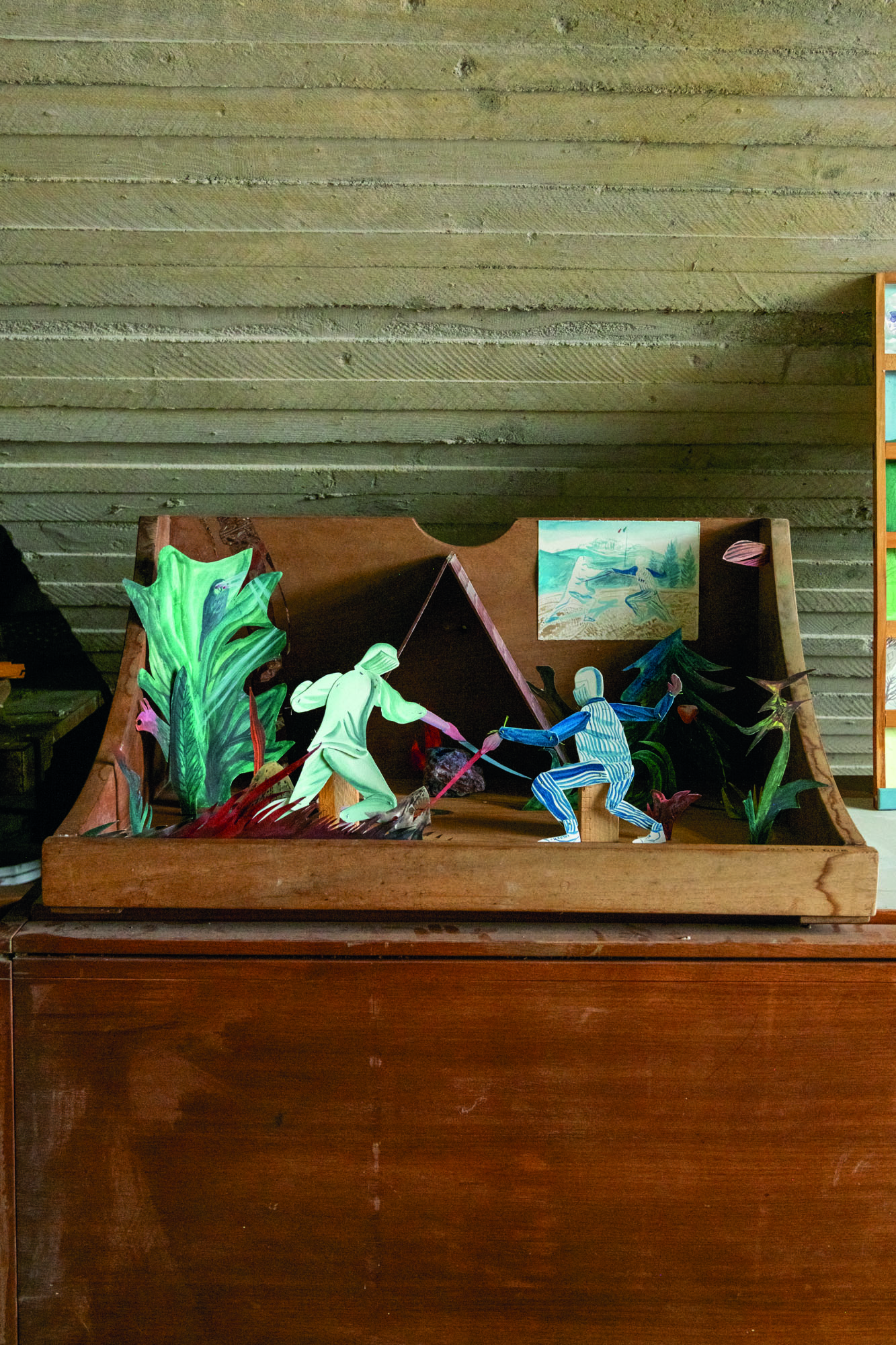 Ho trovato un opuscolo abbandonato in un mobiletto abbandonato in un bagno deserto della Colonia. Raccontava il tipo di felicità che un tempo le persone ricercavano: come promuovere un luogo? I bambini giocavano davanti alle tende e gli adulti si allenavano insieme con gioia. Che tipo di felicità ricercavamo? Era una specie di fantasia socialista? O l’orgoglio del capitalismo? È già diventato ridicolo con il passare del tempo? Chissà! Piuttosto, facciamo scherma!
